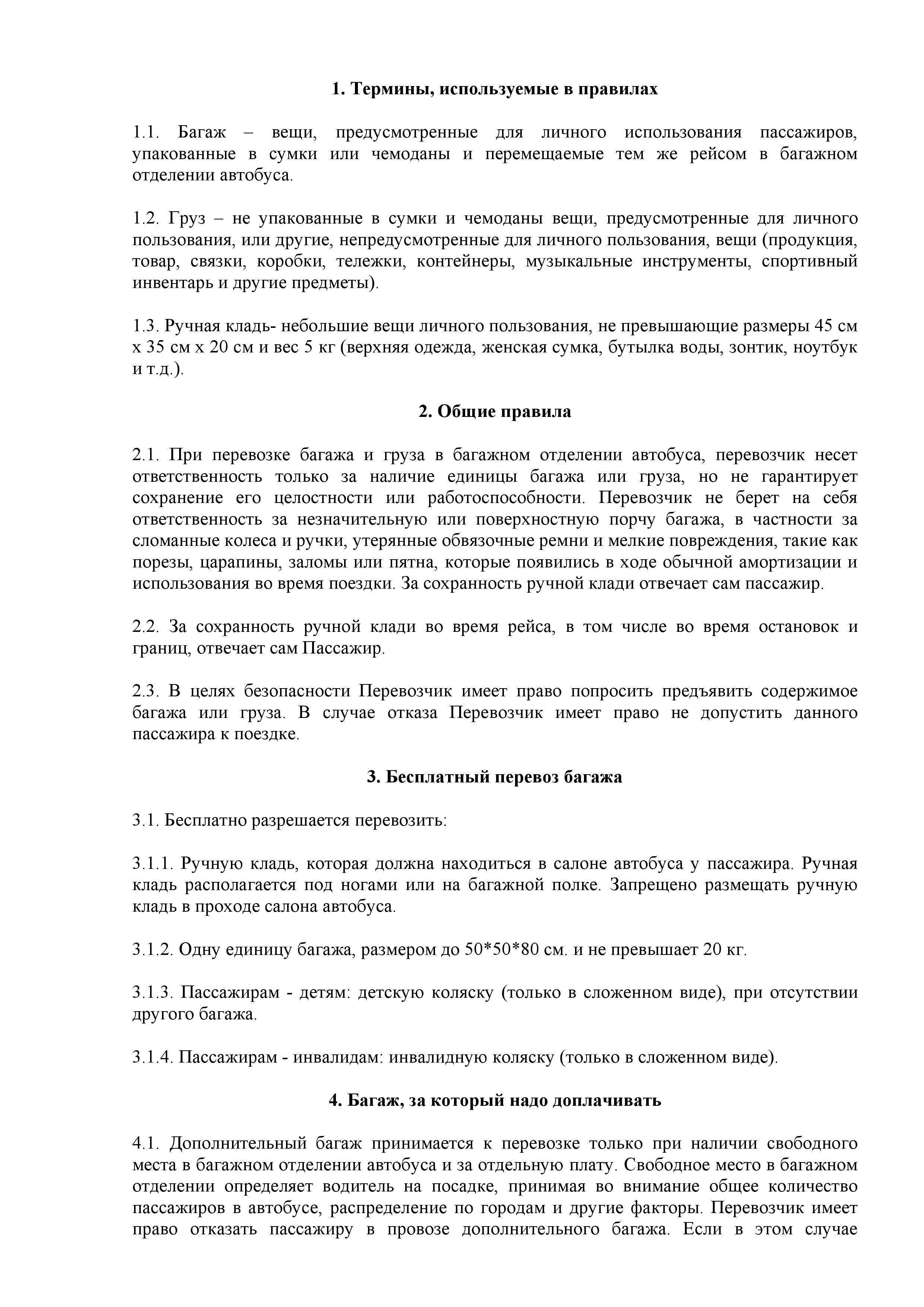 Правила провоза багажа